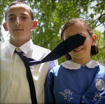 1900Turkse schoolkinderen in uniform. Dit bestand is een scan van een kleur kleinbeeldnegatief en digitaal bewerkt. Uitvoering op pearl(halfmat) afdrukt en op mdf geplakt.